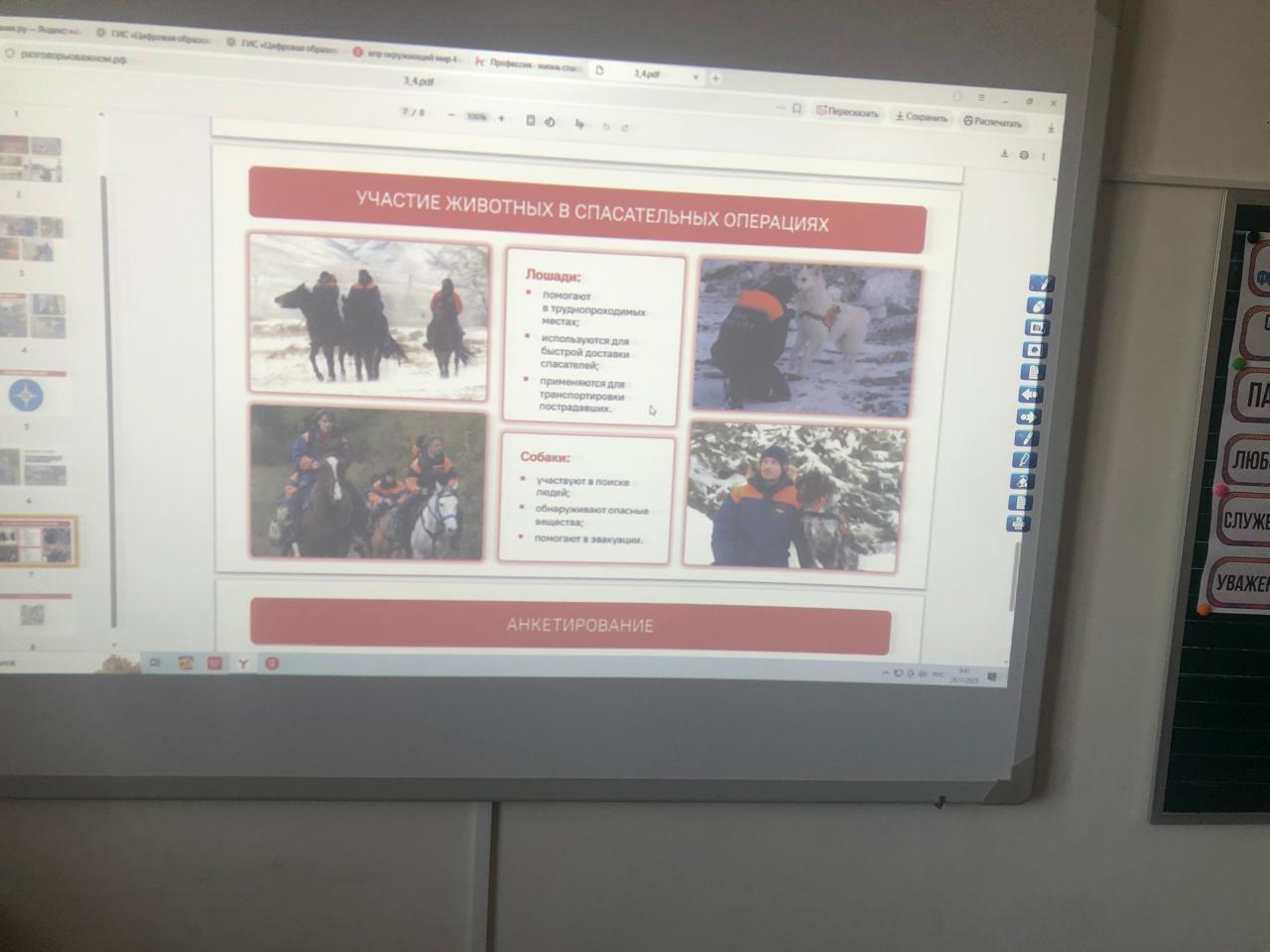 Завершился классный час просмотром видеороликов и обсуждением того, какие профессии, связанные со спасением жизни, могут заинтересовать современных школьников.Такие встречи помогают ребятам лучше понимать ценность человеческой жизни и воспитывают уважение к тем, кто ежедневно стоит на страже безопасности и здоровья общества.