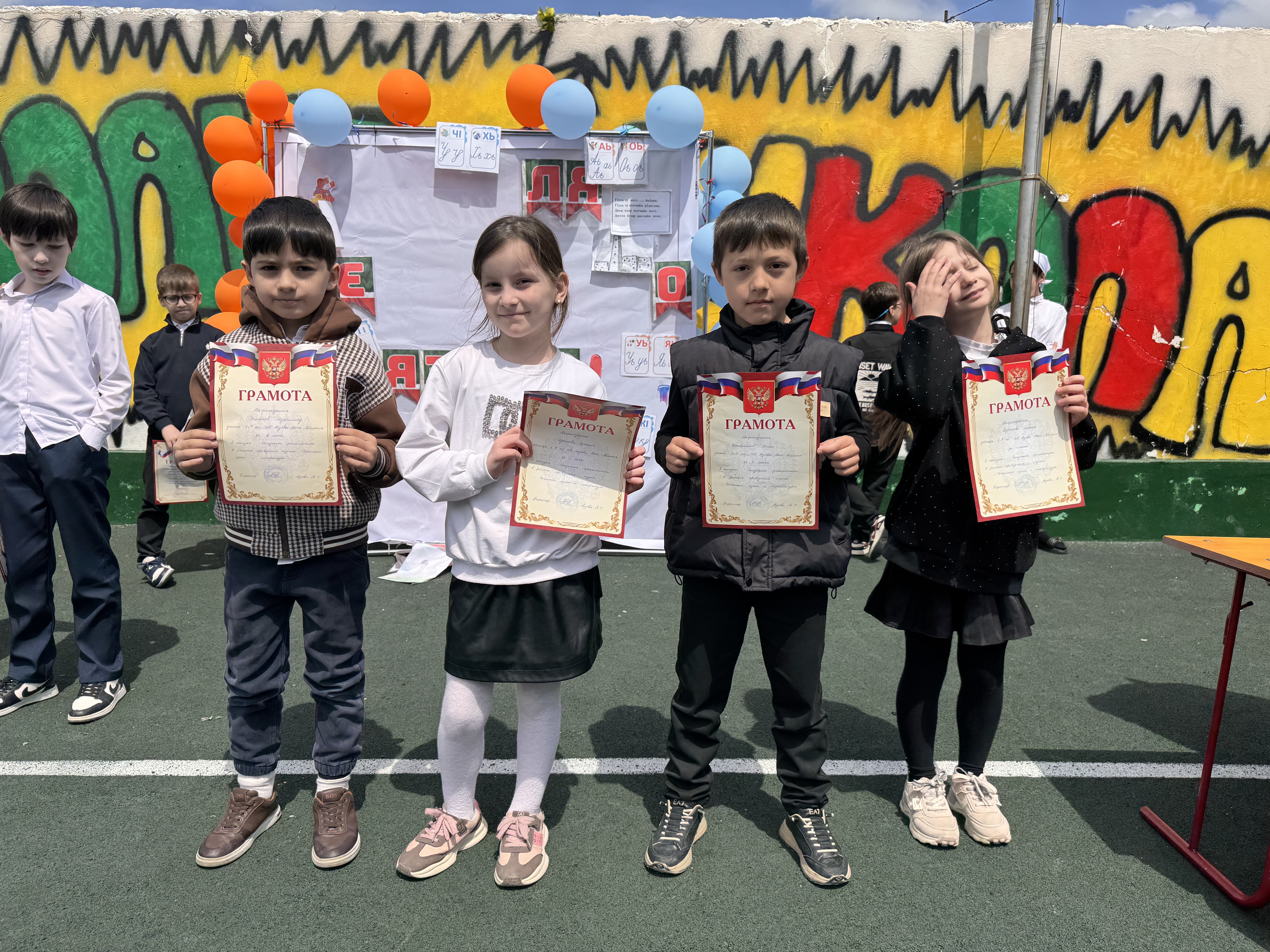 🎉Сегодня, в рамках недели чеченского языка, прошло награждение участников. Линейка началась с торжественного подъёма российского и чеченского флагов🎉